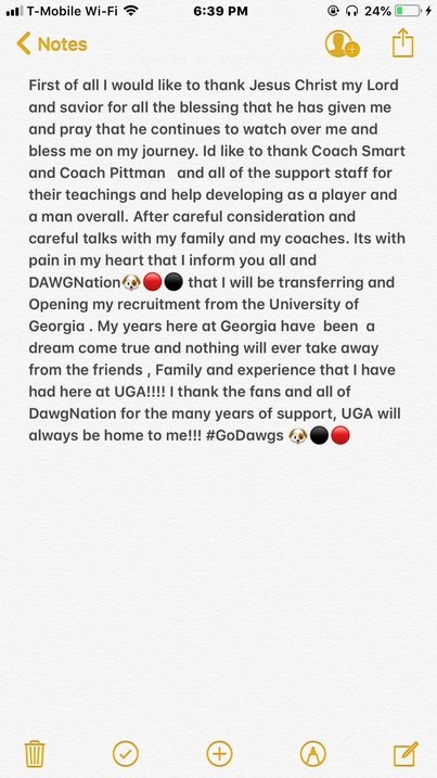 UGA RS Junior OL Pat Allen has announced his intent to transfer